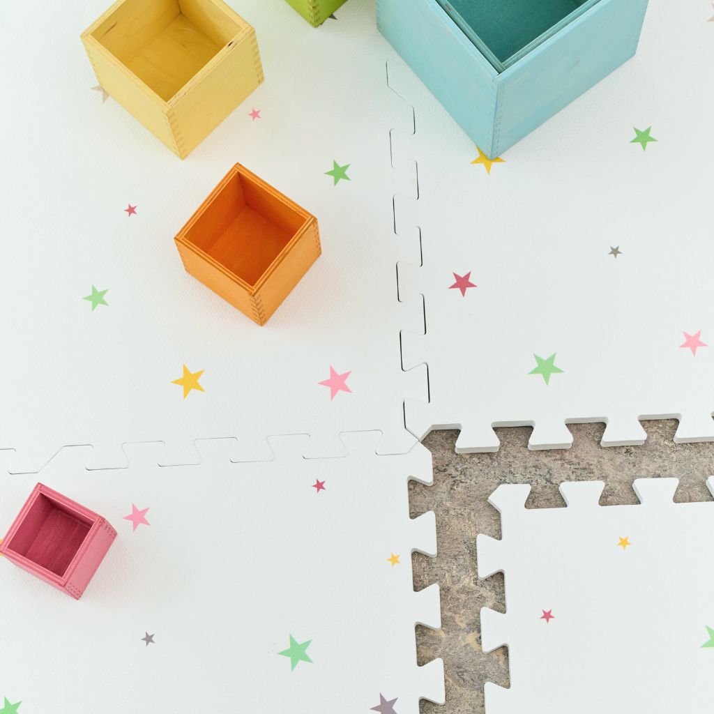 We absolutely love our grey triangle playmat. It blends very well with our living room decor, but also is extremely comfortable and great quality too.