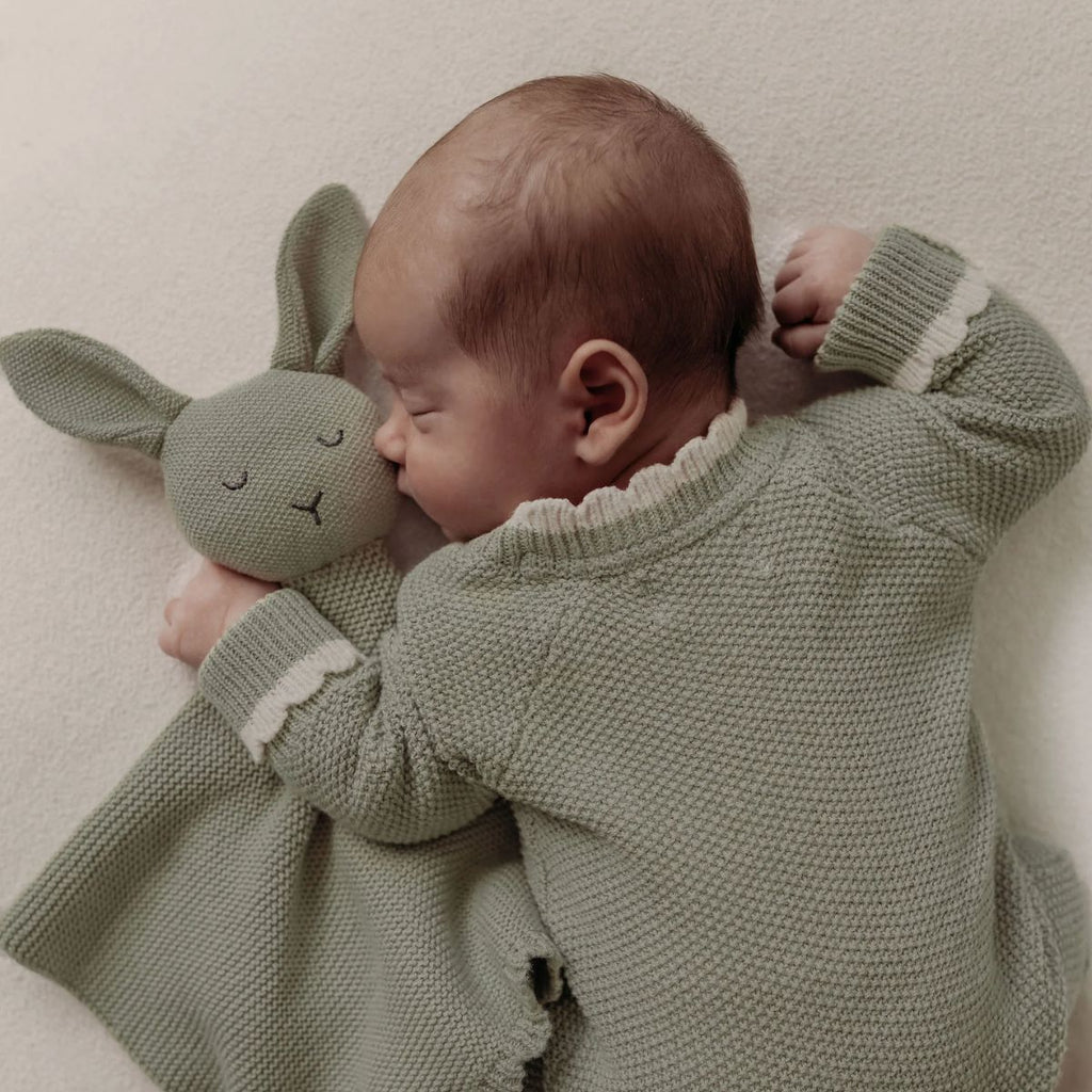 The Isla Bunny Comforters won 'Best Baby Comforter' in the 2023 Organic Baby Awards & the 2022 Loved by Parents Awards. This gorgeous bunny comforter is knitted in organic cotton and finished with their signature scalloped edge.