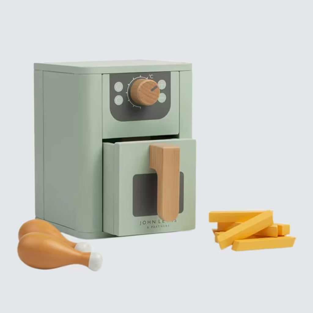 This is the perfect addition to their pretend kitchen and comes in a beautiful sage green. Crafted with premium quality, sustainably sourced wood, this air fryer toy comes with chips and drumsticks for kids to fry up a feast.