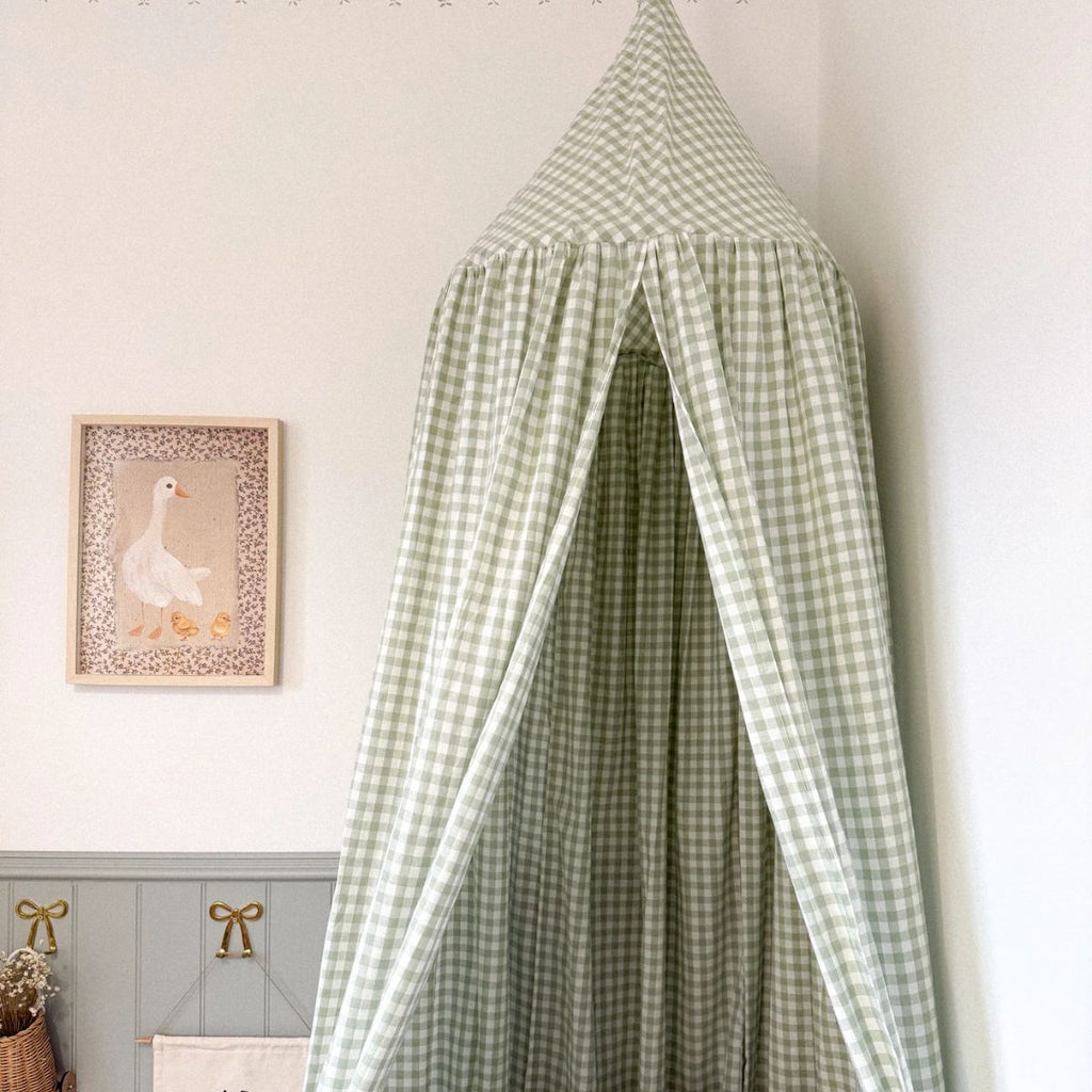 This dreamy gingham, checkered bed canopy would look wonderful over your little ones bed, crib or make the cosiest den in their play space, to snuggle in and read books or create a hidden cave.
