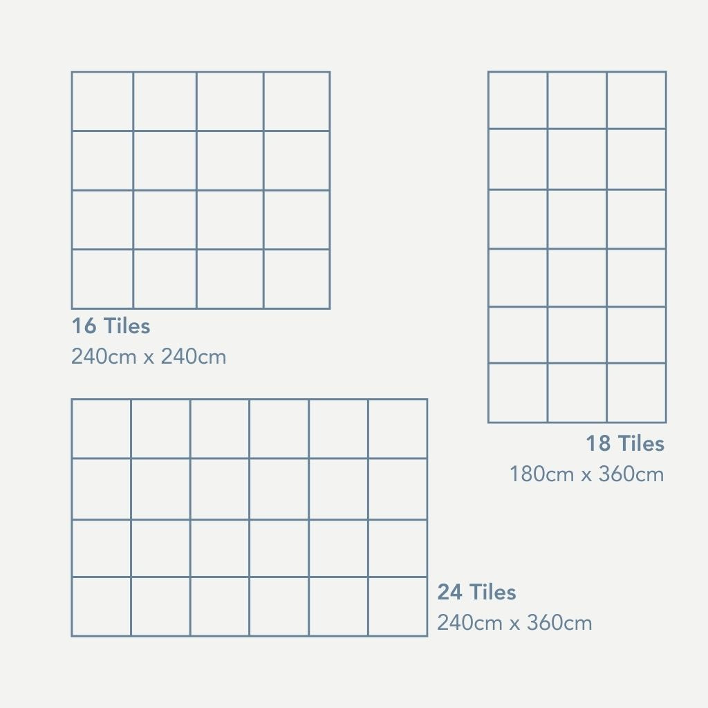 36 tiles | 360cm x 360cm | Square or Rectangle |