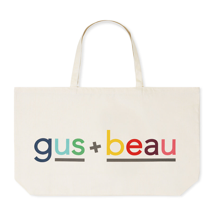 Our brand NEW extra large canvas Tote Bag is perfect for taking all your baby essentials on the go! The thick canvas is durable and features our colourful gus + beau logo, while the oversized design lets you pack in everything you need. Perfect for a big shopping bag, weekend bag, toy storage, beach trips or just chuck everything in and go!