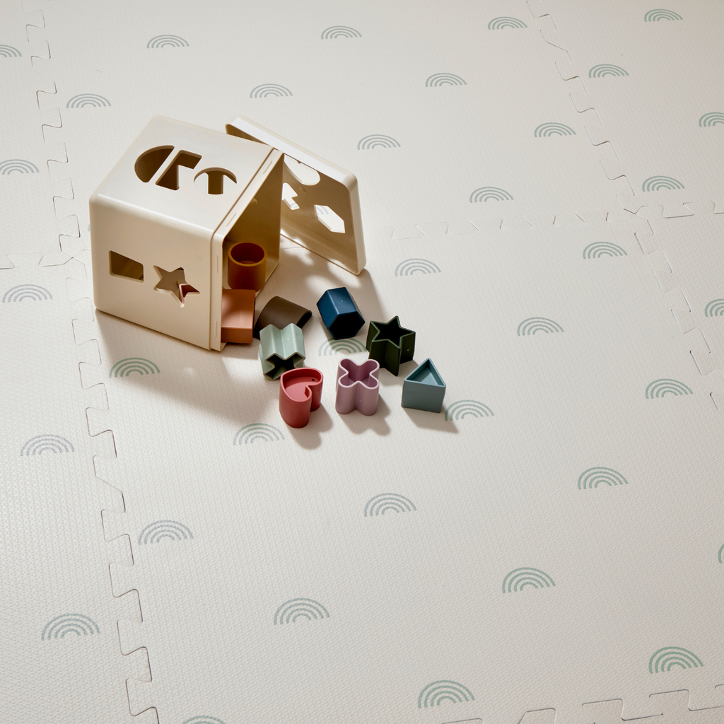 Our bestselling Rainbow baby playmat is now available in NEW Sage + Cream.